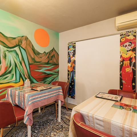 カラフルな色使いと迫力あるグラフィティアートが迎える店内。一歩入れば本場メキシコの雰囲気を体感できます。明るく楽しい色使いの店内も魅力のひとつです。特別だけど、何度でも訪れたくなるような空間をお楽しみください。
