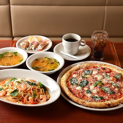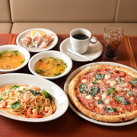 浦添でのデートにおすすめしたい自由度の高いプランです。お好みのパスタ&ピザを1種ずつ選択でき、スープやドリンクバーも付いてお得感も満点◎当店自慢のイタリアンを一度に味わえて、お腹も心も満たされます。ランチタイムは300円(税込)引きでさらにお得♪