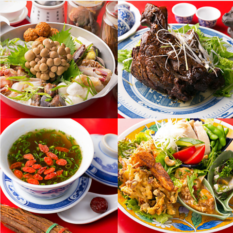 当店自慢の薬膳鍋を中心とした贅沢なラインナップのコース。体にやさしい薬膳食材をふんだんに使用し、季節や体調に合わせて楽しめる内容です。価格は6600円で、ご利用いただくお客様に心も体も満足いただける構成となっています★会食やお祝い事など、幅広いシーンでおすすめの内容です♪