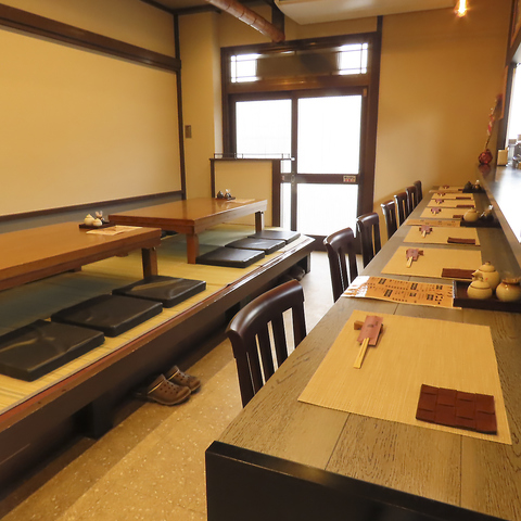 ゆったりと配置されたテーブル席は、6名様掛けを3卓ご用意しております。八潮での会社宴会や、ご家族での団らん、会食や接待など様々なシーンに対応可能です。温もりを感じる落ち着いた内装が、日常の喧騒を忘れさせてくれます。お隣を気にせずお食事を楽しめる広々とした空間で、贅沢なひとときをお過ごしください◎