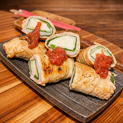 愛媛の今治焼きを思わせる調理法で仕上げる鶏肉料理。鉄板でじっくり火入れすることで皮は香ばしく、中は旨みを閉じ込めたジューシーな食感に仕上げています。余分な脂を落としながら焼き上げるため後味は軽やか。素材の味わいを活かしたシンプルな味付けで、お酒と合わせて楽しめる一品です。