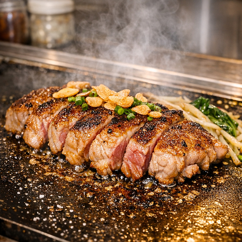 店主が10年以上磨いた鉄板技術で素材の旨みを最大限に引き出します。絶妙な火入れによる香ばしさが魅力。