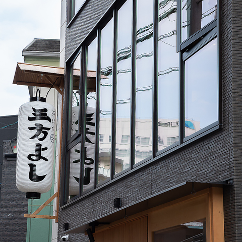 「炉ばた 三方よし」へようこそ! 当店は、伝統と現代美が響き合う和モダンな空間です。 黒タイルに映える大きな提灯の下で、特別なひとときを過ごしませんか? 皆様のご来店を心よりお待ちしております。