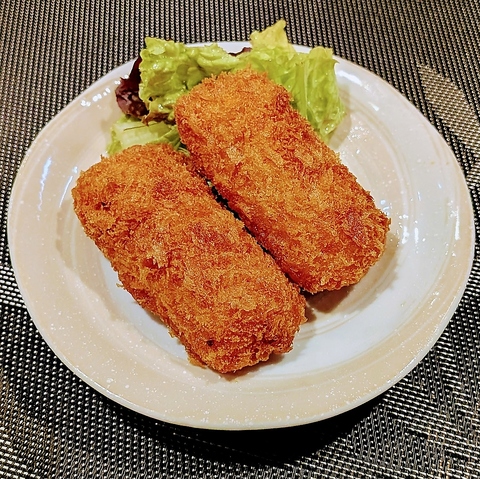 蟹の旨味がぎゅっと詰まった贅沢クリームを、サクサク衣で包んだ究極のコロッケ。老若男女問わず愛される味わいで、自家製オーロラソースが濃厚クリームを引き立てる。食べた瞬間、幸せな気持ちが広がる定番の一皿♪
