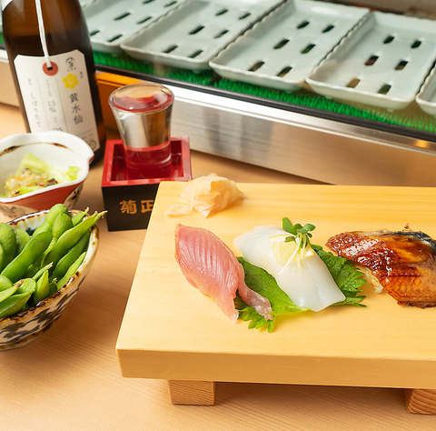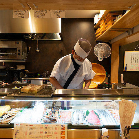 産地直送の新鮮な魚を大将が目の前で握ります。