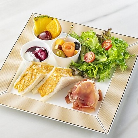 2200円(税込)で愉しめる贅沢なモーニング。京丹波産の『寿恵卵』を使用した「たまごサンドウィッチ」や、生ハム・サラダ・フルーツ等を盛り合わせた豪華なプレートです◎セットのドリンクはコーヒーのほか、朝からスパークリングワインも選択可能♪+800円(税込)でシャンパンへの変更もOKです。特別な一日の始まりを優雅に彩ってみませんか♪