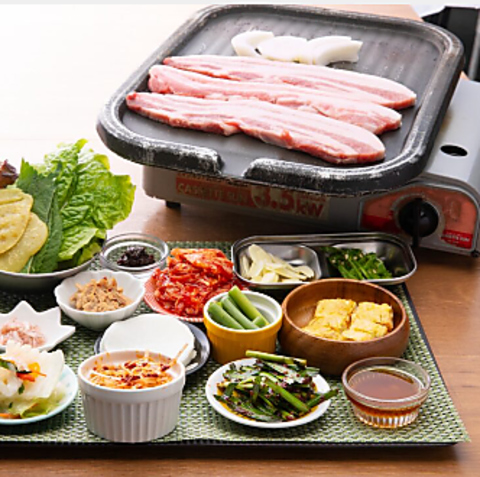 自分へのご褒美!おかわり自由のパンチャン付「韓定食」や、大人気の「ひとりサムギョプサル」を堪能。