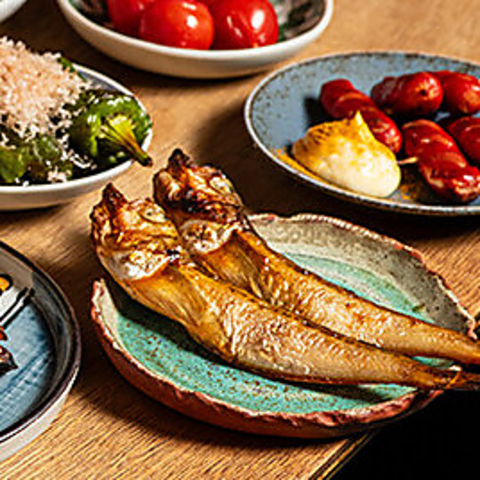 当店自慢の炉端焼きは、金沢港直送の干物と厳選された国産野菜を使用。素材の風味を最大限に引き出すため、シンプルに味付けし、焼き方にもこだわっています。ヘルシーな味わいは女性の方にも人気!香ばしさが食欲をそそる、炉端焼きならではの香りや旨味の凝縮をお楽しみください。