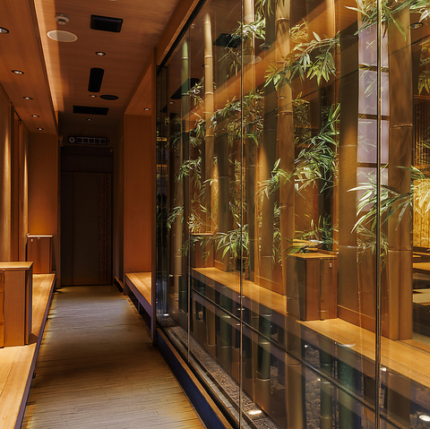 淡い光が上部より差し込むのもデザイナーによる設計が見せる技です。光がどのように差し込みお料理や空間に反映されるかも考えて設計しております。高級感が溢れる店内の個室で和食料理にゆっくりと舌鼓できます。◇郡山 宴会 歓送迎会 女子会 接待 貸切◇