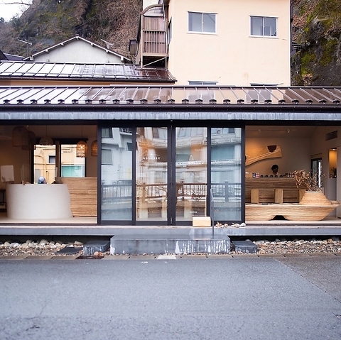 福島県産の杉材をふんだんに使用した店内は、足を踏み入れた瞬間に木の香りが広がる癒やしの空間です◎大きな窓からは荒川の清流や四季折々の山々を眺めることができ、開放感は抜群♪モダンながらも温かみのある内装は、温泉街の散策途中にふらりと立ち寄りたくなる心地よさです。