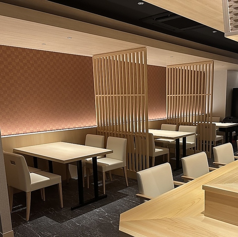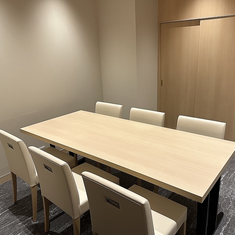 【和とモダンが調和する完全個室】4名様、6名様、8名様用の個室を完備。木の温もりを感じる洗練された空間は、接待や会食、結納・顔合わせなど、大切なお客様をおもてなしするシーンに相応しい造り。周りを気にせず、ゆったりとお寛ぎいただけるプライベート空間です。