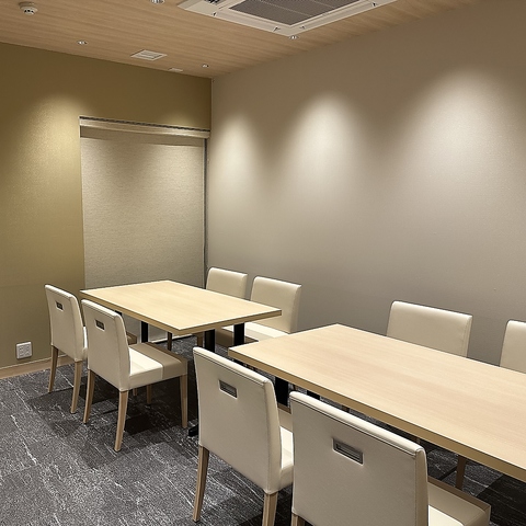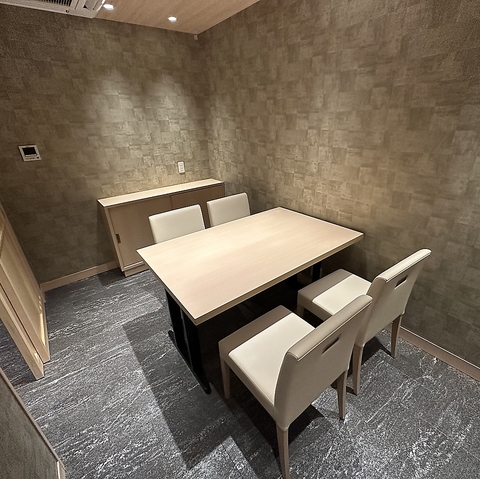 【和とモダンが調和する完全個室】4名様、6名様、8名様用の個室を完備。木の温もりを感じる洗練された空間は、接待や会食、結納・顔合わせなど、大切なお客様をおもてなしするシーンに相応しい造り。周りを気にせず、ゆったりとお寛ぎいただけるプライベート空間です。