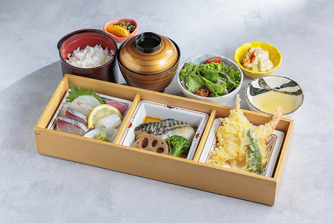 ボリュームも満足感も兼ね備えたご飯大盛無料が嬉しいランチ定食を種類豊富にご用意しています。サラダ・だし巻き・味噌汁・お新香付きの「炙りサーモンの月見飯とごちそう天ぷら定食:1980円(税込)」、サラダ・鯛の出汁・お新香付きの「鯛の月見茶漬けご飯と旬野菜天ぷら定食:1980円(税込)」など充実のラインナップです◎
