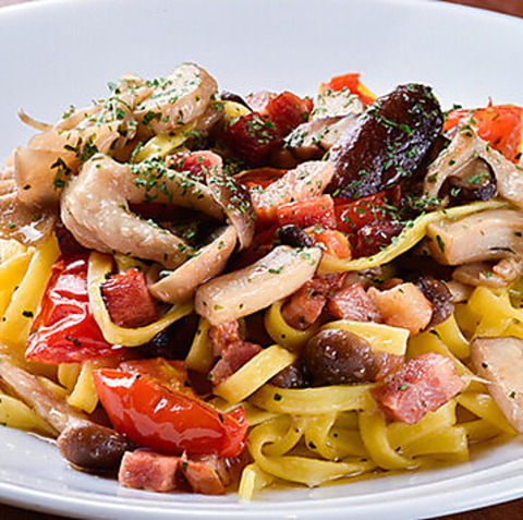 今しか味わえない季節限定の「ボスカイオーラ」をご用意しました!ツナの旨味とたっぷり入ったキノコの食感が、自家製トマトソースと絶妙にマッチする一品です◎「木こり風」という意味を持つこのパスタは、山の幸を存分に楽しめるのが魅力。お手頃価格ながら、素材の良さが際立つ贅沢な味わいに仕上げました。