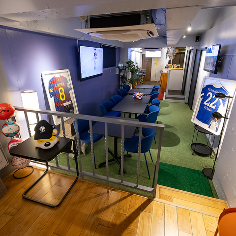 一歩入れば、そこはまるでスタジアム。臨場感あふれる空間演出とモニター完備で、どの席からも熱戦を体感。歓声が響くような高揚感の中、仲間とともに盛り上がる特別な時間を。試合の日も、そうでない日も、気分はいつでもキックオフ。