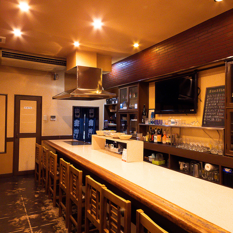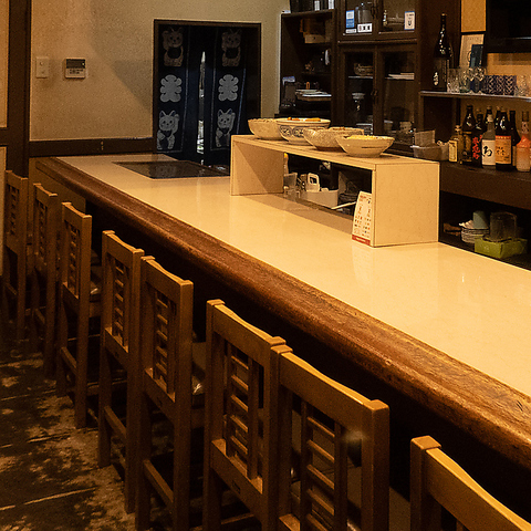 調理のライブ感を間近で楽しめるカウンター席を10席完備しております。お一人様でのお食事はもちろん、目の前で仕上がる料理の音や香りを五感で楽しみながら、ゆったりとした時間をお過ごしください。日常の喧騒を忘れさせてくれる、心地よいひとときを提供いたします。