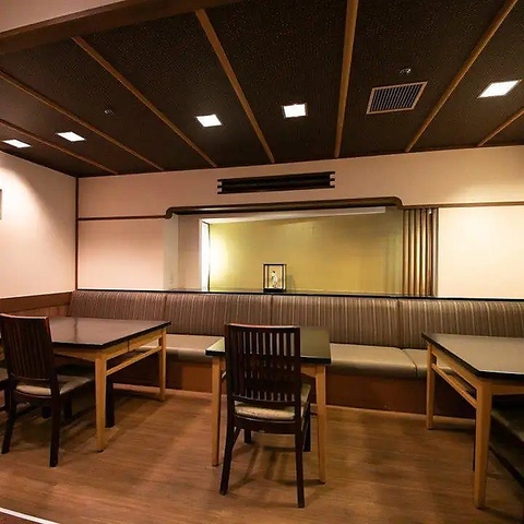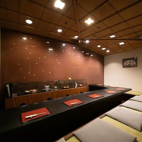 職人の手仕事を間近で愉しめるカウンター席は、6名様までご利用可能な掘りごたつ仕様となっております。足を伸ばしてゆったりと寛げるため、お一人様での贅沢ランチや、大切な方としっぽりとお酒を酌み交わす夜のひとときにも最適。木の温もりを感じる落ち着いた空間で、老舗ならではの味を気軽にご堪能いただけます◎