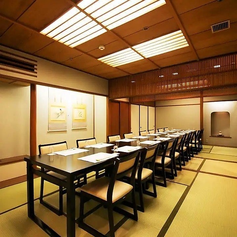 最大20名様まで着席可能な大型の完全個室。和の風情を感じる格調高い空間は、同窓会や歓送迎会、長寿のお祝いなど、大人数が集まる特別な日の会食に◎ゆとりのある広さで、プライバシーを守りながら老舗ならではのおもてなしをご堪能いただけます。人数に応じたお部屋のご相談も承りますのでお気軽にどうぞ。