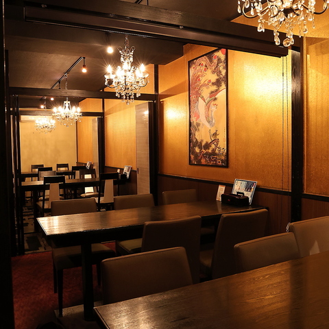 | 個室 | 4名様×1 | プライベート感を重視したお席。シャンデリアが輝く落ち着いた空間で、接待や記念日、特別な会食に最適です。 |
