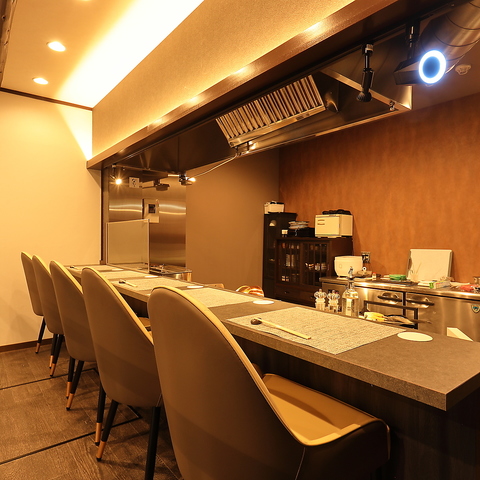 シーンに合わせたお席をご用意!シェフが目の前で調理するライブ感を楽しめるカウンター席は特別なディナーに最適です。落ち着いた静かな空間で、プライベートな食事を堪能できます◎