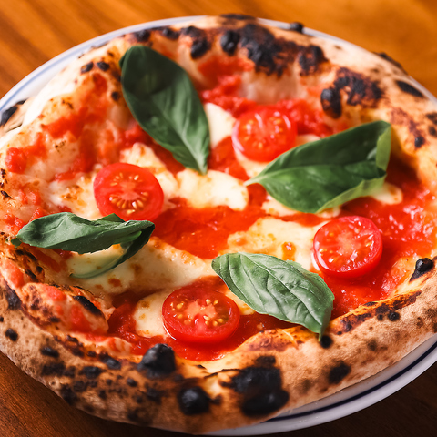 本場イタリアのナポリで修行したシェフが作るナポリピザは、国産小麦を100%使用した生地を高温の石窯で一気に焼き上げるため、外は香ばしく中はもっちりした贅沢な食感です★イタリア産のチーズやオリーブオイル、新鮮なトマトソースが生地と絶妙に調和♪厳選された食材を使用し、素材のうまみを最大限引き出した一枚!