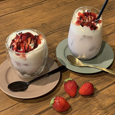 デザートの目玉である「しぼりたてモンブラン苺大福味」1150円(税込)は、目の前で最後の仕上げを魅せる和と融合した華やかなモンブランです♪苺の甘酸っぱさと餡の優しい甘さが絶妙に調和した新感覚の味わいを楽しめます◎和の情緒溢れる店内で、お好みのドリンクと一緒に♪見た目も華やかな一皿はSNS映えも間違いなしの逸品です◎
