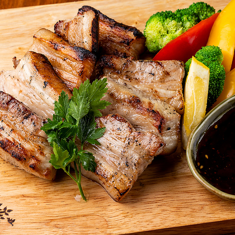 自慢の炭火焼きBBQは、熟成サーロインや牛ハラミ、自家製ローストビーフなど、お肉好きにはたまらないラインナップが勢揃いです!炭火でじっくり焼き上げることで、旨味をギュッと凝縮◎全天候型のテラス席なので、急な雨でも安心してお食事を楽しめます。青空や夜景を眺めながら、外で食べるお肉の美味しさをぜひ存分に体感してください!