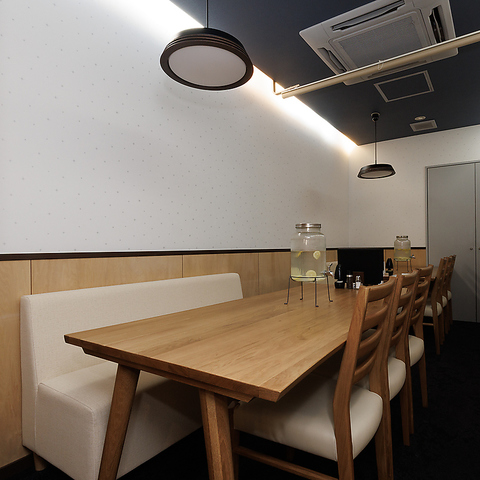 シンプルで心落ち着くデザインの空間が魅力です。ゆったりとした席配置で、少人数様のグループでも快適に過ごせるよう配慮しています◎馬出九大病院前駅から徒歩圏内という立地の良さもあり、アクセスしやすく急なお集まりに最適です。オーガニック料理や豊富なドリンクとともに楽しい時間を過ごせる空間を整えております☆