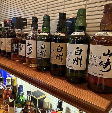 【豊富なお酒】山崎・白州など人気ウイスキーをはじめ、焼酎やワインなど多彩なドリンクをご用意。