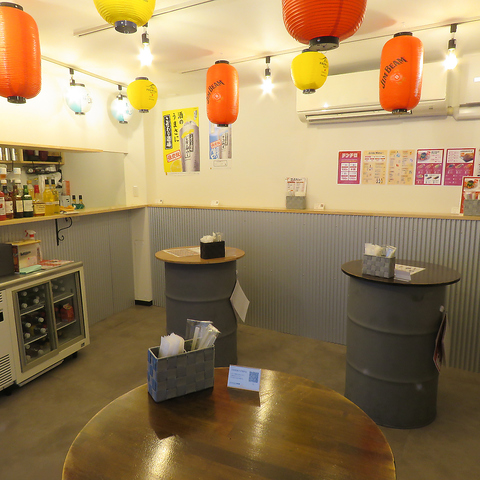 ドラム缶をアレンジしたテーブルを囲むカジュアルなスタイルは、お仕事帰りのサク飲みや、ご友人とのちょっとした飲み会、お一人様でも気兼ねなく立ち寄りやすいアットホームな雰囲気が魅力です。