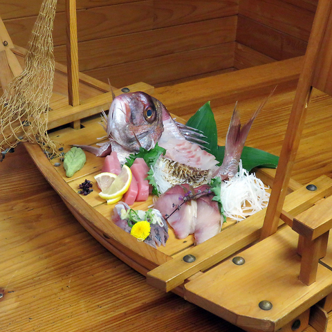 朝一番に市場へ足を運び、厳選して仕入れる当店の刺身は、鮮度の違いがひと口で分かる自慢の逸品。店内で丁寧に捌くことで、素材本来の甘みや繊細な食感を最大限に引き出しています。さらに、5,000円以上のコースを5名様以上でご利用の場合は、豪華な“舟盛り”でご提供。彩り豊かな盛り付けで宴席を一気に華やかにします!