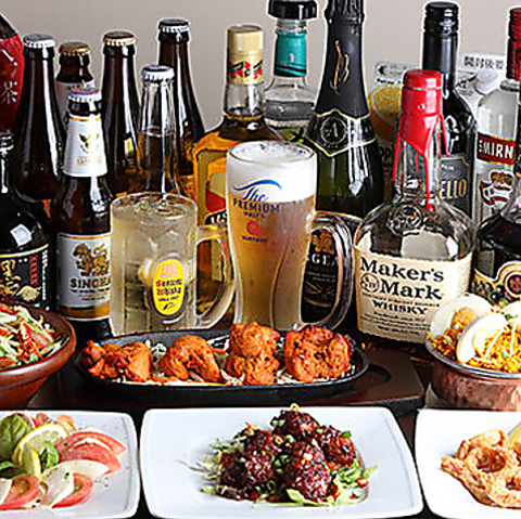 コース飲み放題は生ビールやサワー、珍しいラッシーカクテルも対象!スパイシーな料理とお酒の相性◎