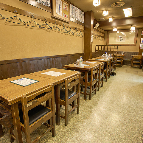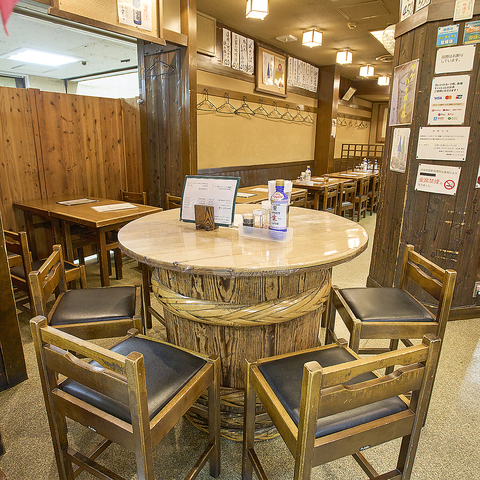グループでの宴会や友人との食事に便利なテーブル席も完備しています。清潔感のある広々とした空間で、周りを気にせずにお料理とお酒を堪能できます。梅田駅近という便利な場所にありながら、落ち着いて腰を据えて飲める、まさに知る人ぞ知る名店のような佇まいです。