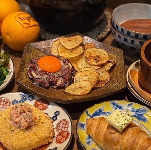 20名様以上の団体様も大歓迎の広々としたテーブル席を完備しており、グループでの賑やかな宴会に最適です。名物の土鍋御飯を囲みながら、和洋折衷の多彩な創作料理を皆でシェアして楽しめます。四条烏丸の好立地で集合しやすく、SNS映えする料理とお酒を片手に、思い出に残る楽しい夜を賑やかにお過ごしください。