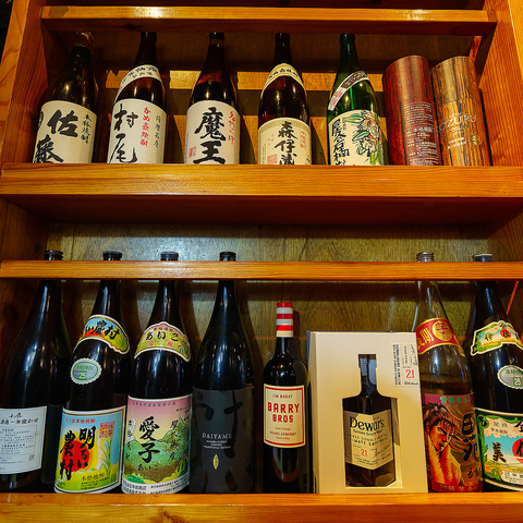 壁一面に並ぶ焼酎やお酒の数々は、思わず目を引く充実のラインナップ。定番から人気銘柄まで幅広く揃っており、その日の気分で楽しめるのが魅力です。料理に合う一杯を選ぶ楽しさと、棚に並ぶお酒を眺めるワクワク感が、食事の時間をさらに豊かにしてくれます。