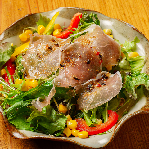 焼き鳥だけでなく、食事の満足度を高めるために、丁寧に手仕込みした逸品料理も豊富にご用意しています。黒豚を使った料理や、素材の良さを活かしたサラダ、定番のおつまみから〆まで幅広く取り揃え、どなたにも楽しんでいただけます。焼き鳥との相性も抜群で、食べ進むほどに楽しみが広がるラインナップです。