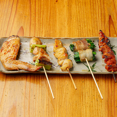 当店の焼き鳥は、部位ごとに最適な切り方と温度帯を見極め、秘伝のタレと塩を使い分けて丁寧に焼き上げます。炭の香りがしっかりとまとい、外はパリッと香ばしく、中はふっくらジューシーに仕上がるよう火入れを徹底管理。素材本来の旨味を引き立てる“究極の一本”をお楽しみください