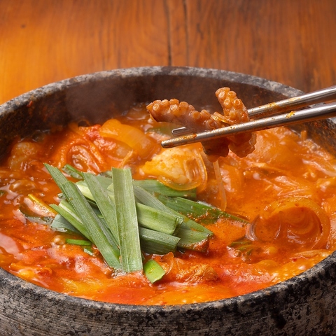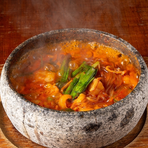 韓国で人気の旨辛鍋「ナッコプセ」を石焼スタイルでご提供。和牛ホルモン、イイダコ、海老など人気食材を贅沢に使用し、特製辛味噌で旨味たっぷりに仕上げました。熱々の石鍋でぐつぐつと煮込むことで、海鮮とホルモンの旨味が凝縮。お酒が進む本格韓国グルメを自由が丘で気軽に楽しめます。
