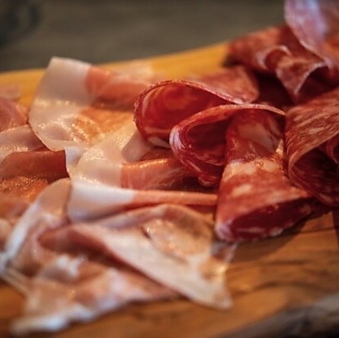 県産お肉の自家製生ハムを部位違いでご用意いたします