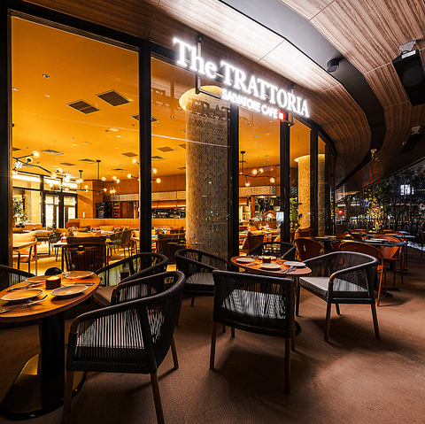 温かな光を放つモダンな照明が、特別な夜を演出する「TRATTORIA SALVATORE CAFE」。広々としたフロアには心地よい音楽が流れ、奥の本格ピッツァ窯からは食欲をそそる香りが漂います。都会の喧騒を忘れ、大切な方とゆったりと料理を愉しめる、洗練された大人のための贅沢な空間がここにあります。
