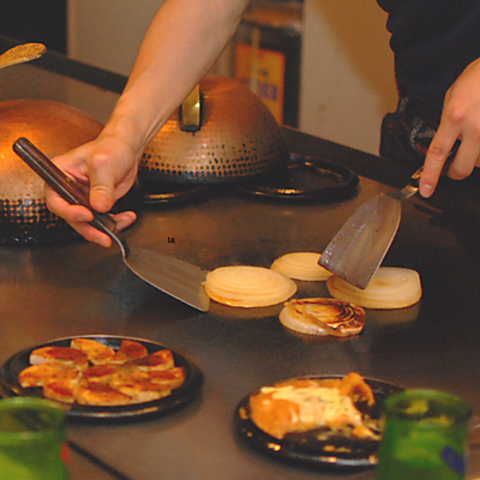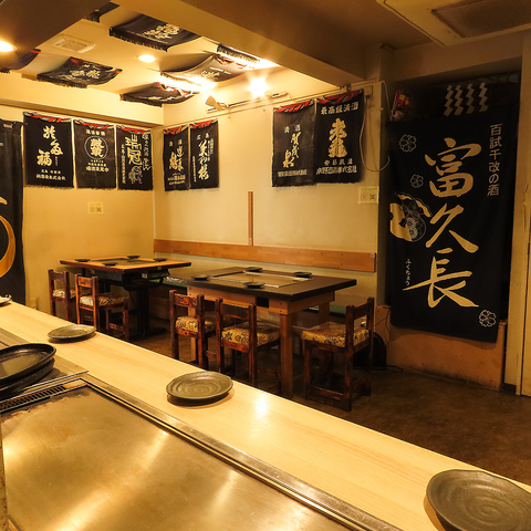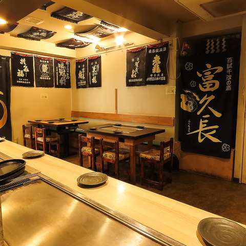 角を囲んで会話が弾む特等席。3~5名様で、職人の手捌きと鉄板の熱気を間近に感じながらお楽しみ下さい。