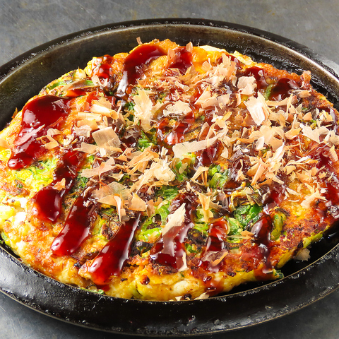 当店ではお好み焼は〆の一品としてお出ししている為、最初にご注文されてもお時間をいただく場合がございます。また、一人でのご来店の方に限り小さいサイズも承ります。