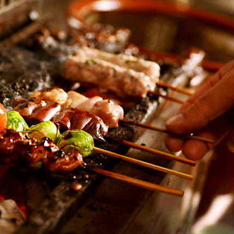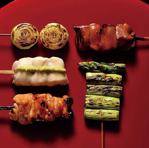各地から仕入れた上質な食材を丁寧に一本ずつ串へ仕上げます。店主自ら炭焼き職人を訪ねて確保したウバメガシの備長炭を使用。遠赤外線の恩恵により短時間で熱が伝わるため、外側はパリッと香ばしく、鶏の旨味を内側へ凝縮した肉汁溢れる仕上がりになります。一串ごとに真心を込めて焼き上げる職人技をぜひご堪能ください。