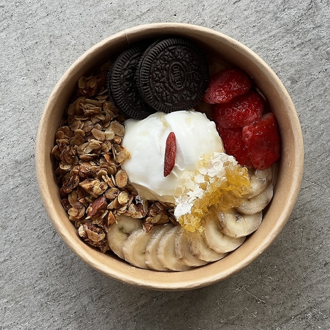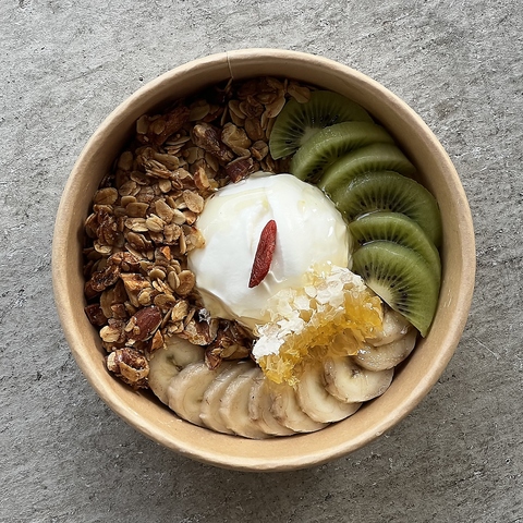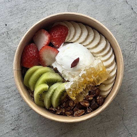 「内容」グリークヨーグルト/苺/キウイ/バナナ/コムハニー/自家製グラノーラ・ロースト/蜂蜜/クコの実