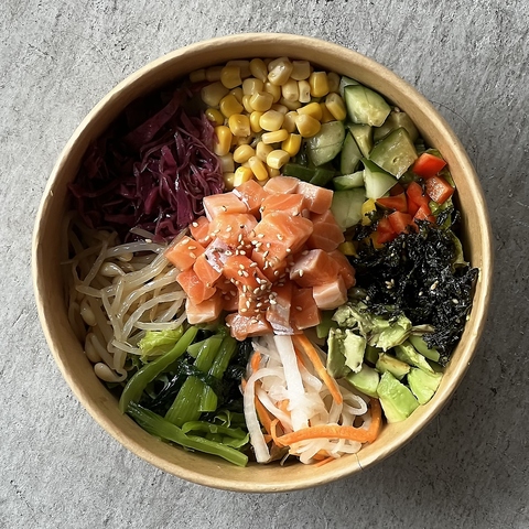 「内容」玄米100g/ケール/サニーレタス/豆もやしのナムル/小松菜ナムル/大根とにんじんの酢ナムル/紫キャベツのナムル/きゅうり/コーン/パプリカ/アボカド/レッドオニオン/韓国海苔