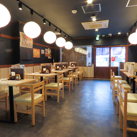 店内は、木目調を活かした温かみのある落ち着いた空間が広がっています。和の情緒を感じさせる内装は、日常の喧騒を忘れさせてくれる穏やかな空気が流れており、ゆったりとお食事を楽しむのに最適です。お一人様からご家族連れまで、幅広いシーンで心地よくお過ごしいただけます。