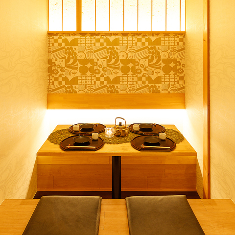 和の趣を感じる落ち着いた少人数個室をご用意しています。ゆったりとした空間は、静かに食事や会話を楽しみたい大人の時間にぴったり。周囲を気にせず過ごせる個室席は、気軽な食事はもちろん、デートや女子会、ゆっくり過ごしたい飲み会などにもおすすめです。