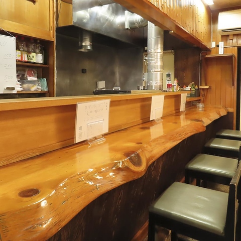 木の温もりが心地よい、立派な一枚板のカウンター席は当店の特等席!目の前で職人が丁寧に焼き上げるライブ感を楽しめるのが最大の魅力です。お一人様のサク飲みはもちろん、横並びで語り合いたいデートにもおすすめ。香ばしい炭火の匂いをお供に、こだわりの串焼きと美味しいお酒を心ゆくまでご堪能ください。