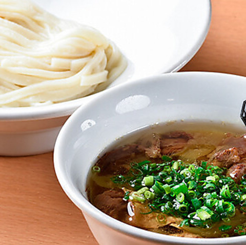 当店不動のナンバーワンメニュー「すじ釜うどん」は850円(税込)でご提供。柔らかく煮込んだ牛すじ肉がたっぷり入った特製汁で食べるつけ麺スタイルです◎麺はご注文を受けてから丁寧にゆがくため、少々お時間を頂く場合もございますが、その分最高の状態でお出しします!あつ・ひや、お好みの食べ方でどうぞ♪