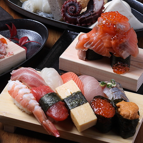 こぼれるほどに盛り付けられた海鮮が魅力の寿司は、旬の魚介を厳選して使用◎鮮度を大切に職人が仕上げ、素材本来の旨みを最大限に楽しませます!一貫ごとに違う食感と香りがあり、食べるたびに新鮮な感動を与える人気メニューです。見た目の華やかさも特別なひとときを演出します☆
